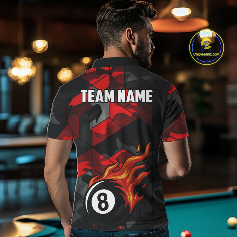 Red And Black Camo Billiard Shirt For Men Custom Flaming 8 Ball Pool Team Shirt, Billiard Jerseys TDM4119