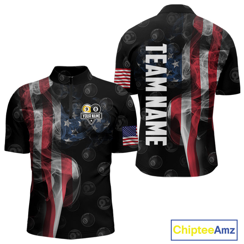 Customized Vintage Smoke US Flag Ball Billiard Shirt For Men, 8 Ball & 9 Ball Patriotic Pool Jersey TDM4467