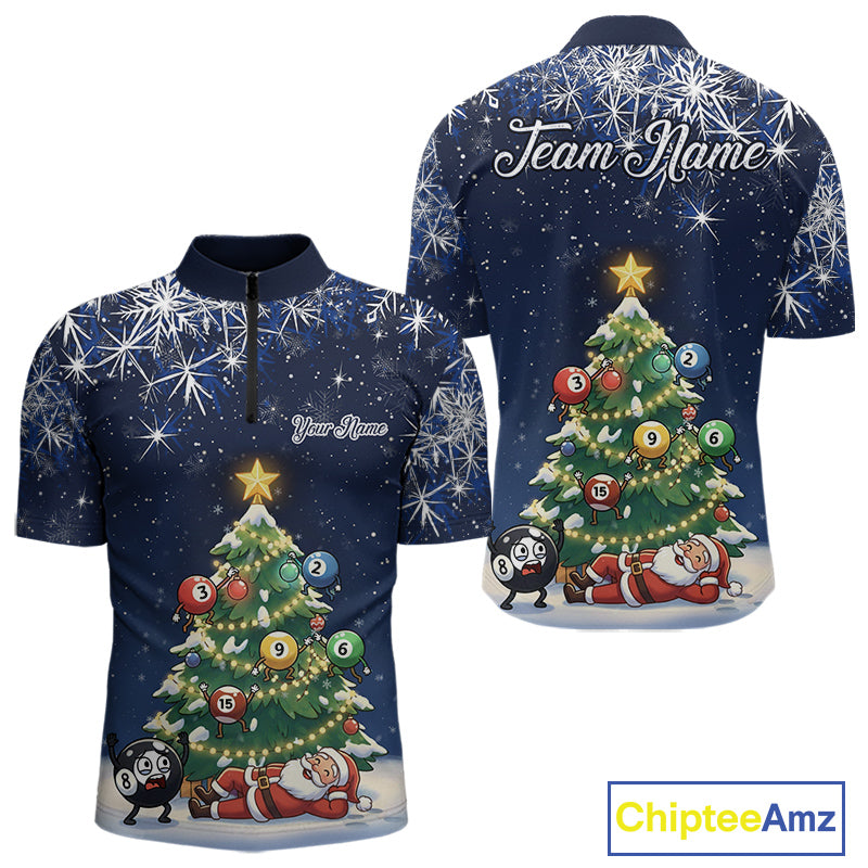 Funny Santa Christmas Billiard Balls Pine Tree Pool Shirt For Men Custom Xmas Billiard Gifts TDM5216