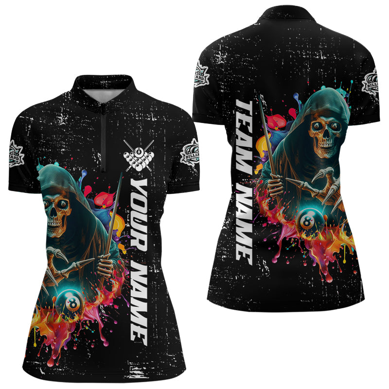 Billiard Death Skeleton Colorful Grunge Style Custom Women Billiard Shirts, Billiard Jersey | Black TDM3201