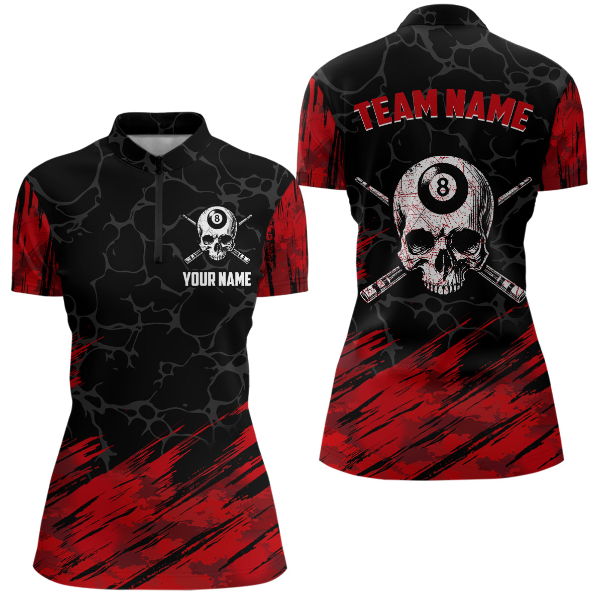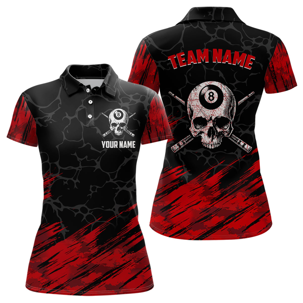 Black And Red 8 Ball Pool Skull Custom Women Billiard Shirts, Billiard Jersey Billiard Team Shirt TDM3303