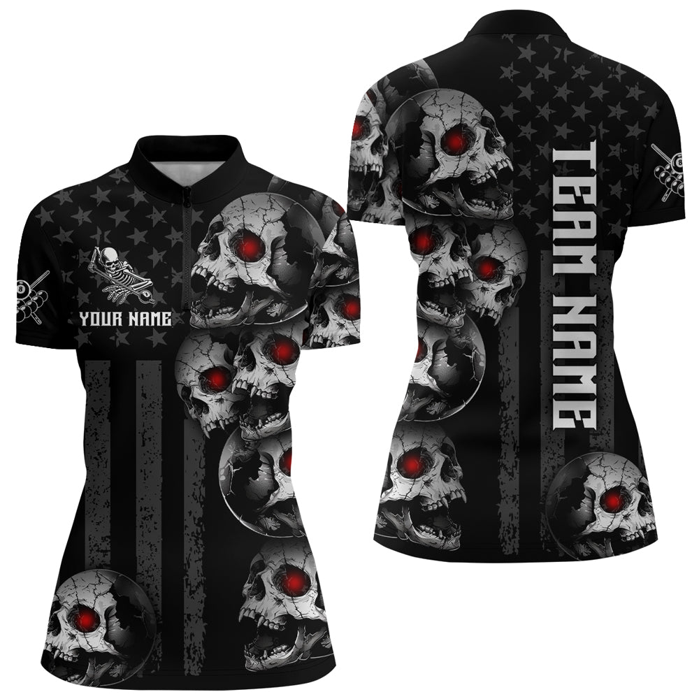 Personalized Black US Flag Skull Billiard Shirts For Women Custom Cool Team Billiard Jerseys TDM3306