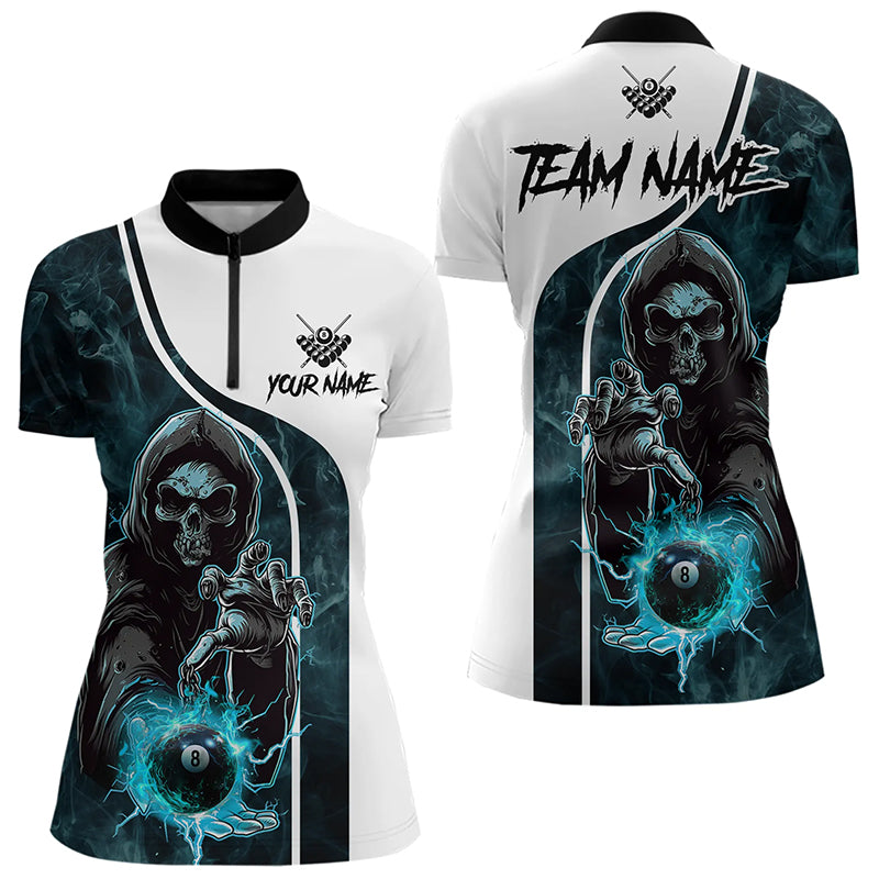 Blue Cyan Death Skeleton 3D Billiard Shirts For Women Custom Lightning 8 Ball Pool Billiard Jerseys TDM3347