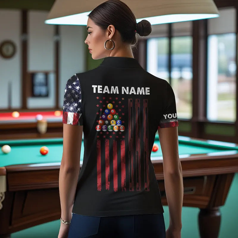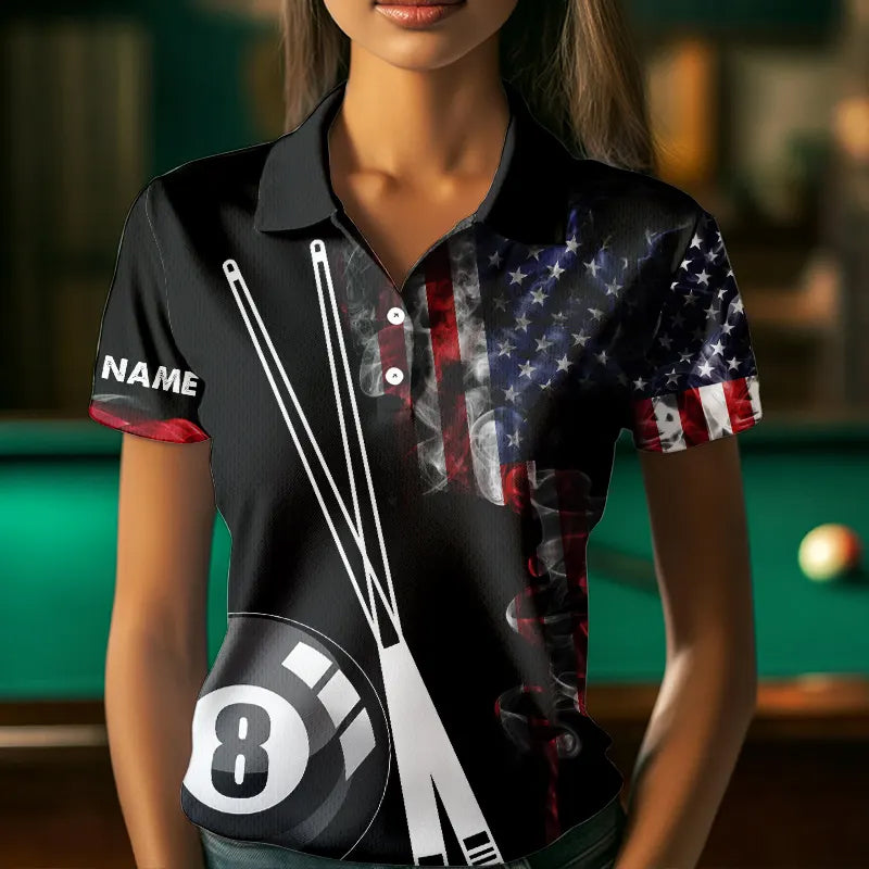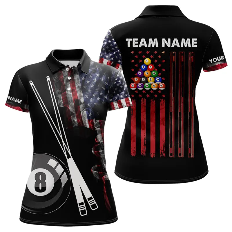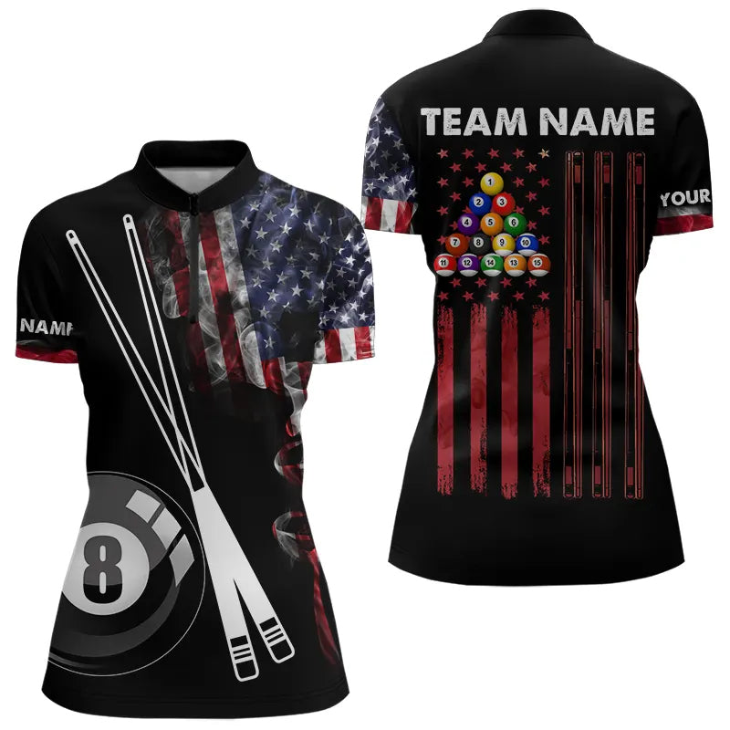American Flag Smoke 8 Ball Pool Billiard Shirt For Women Custom Patriotic Billiard Team Jersey TDM3449