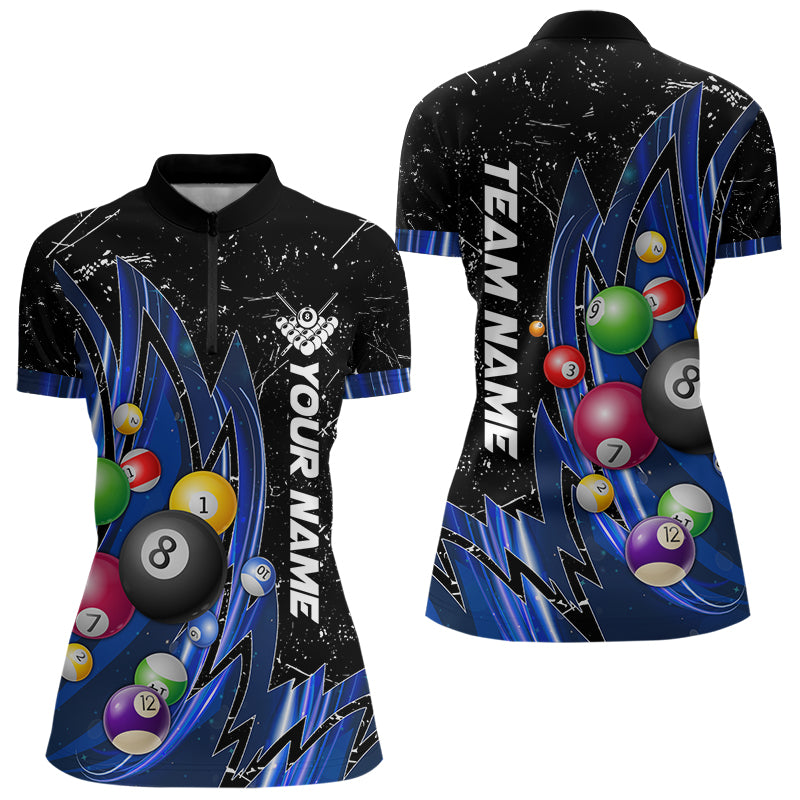 Personalized Wings Blue Grunge Light Billiard Shirts For Women Custom 3D Pool Balls Billiard Jerseys TDM3352