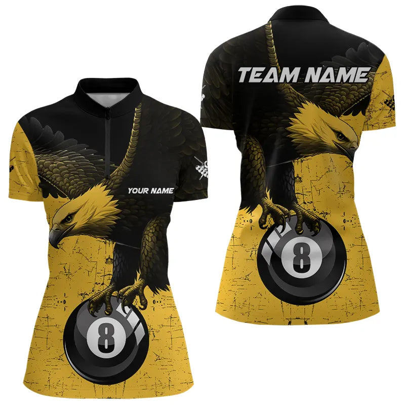 Personalized Yellow Black Eagle 8 Ball Pool Billiard Shirts For Women Custom Cool Billiard Jerseys TDM3358
