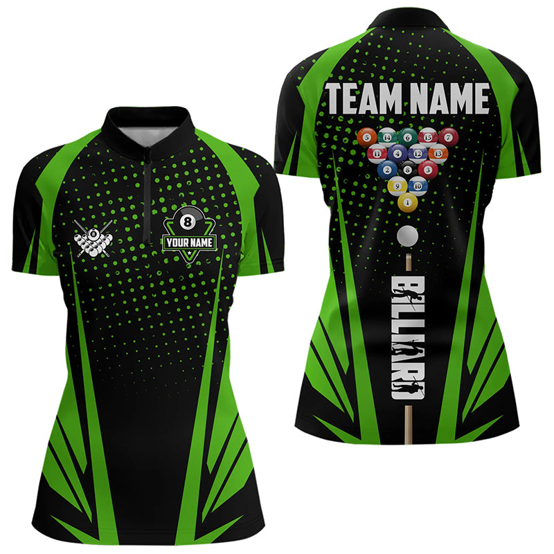 Black And Green Billiard Jerseys For Women Custom 8 Ball Pool Sport Billiard Team Shirts Short Sleeve TDM3363