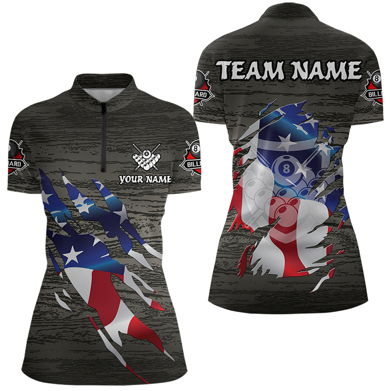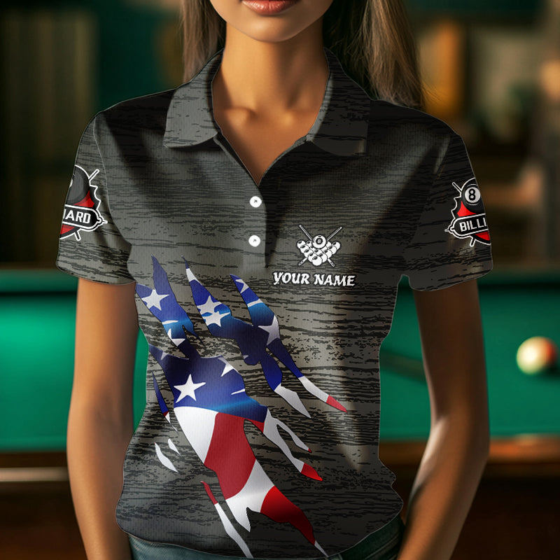 Personalized Grey Grunge American Flag Billiard Shirts For Women Custom Patriotic Billiard Jerseys TDM3379