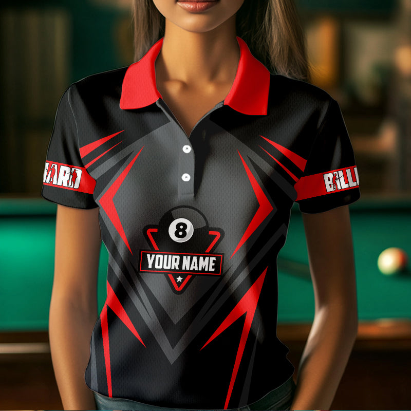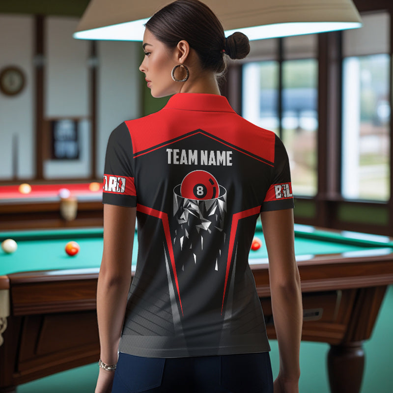 Black And Red 8 Ball Pool Billiard Jerseys For Women Custom Polo & Quarter Zip Billiard Team Shirts TDM3387