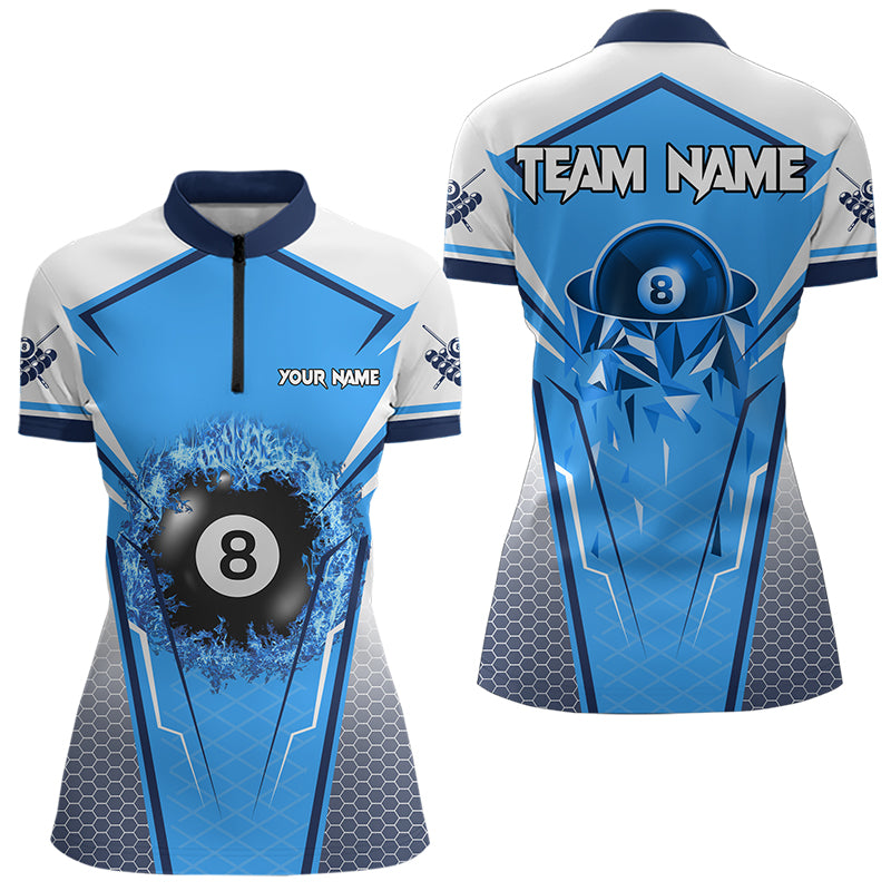 Personalized Blue And White 8 Ball Billiard Shirts For Women Custom 8 Ball Pool Billiard Team Jersey TDM3469