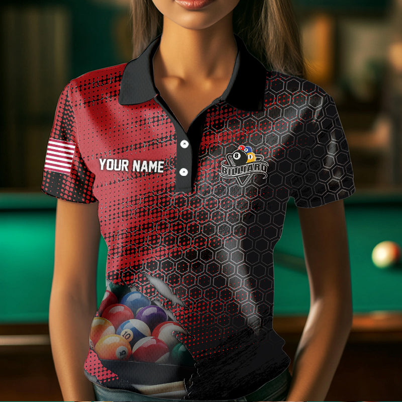 Red And Black Billiard Polo & Quarter-Zip Shirts For Women Custom Billiard Team Shirts Pool Jerseys TDM3473