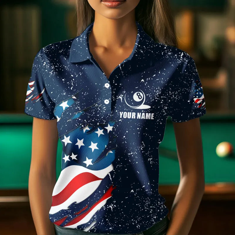 Blue Navy Grunge Eagle American Flag Custom Billiard Shirts For Women, Patriotic Billiard Team Shirts TDM3681