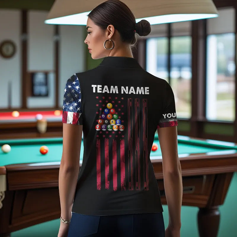 Personalized US Flag Smoke 8 Ball Pool Billiard Shirt For Women Custom Patriotic Billiard Team Jersey TDM3744