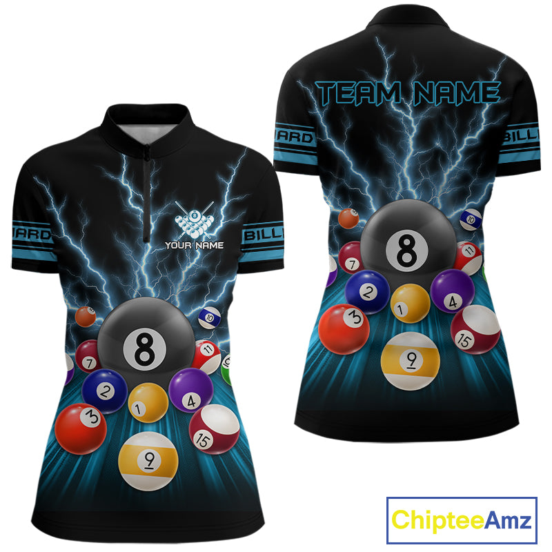 Blue Glowing Electric Billiard Shirts For Women Custom Billiard Jersey Team Polo & Quarter Zip TDM3818
