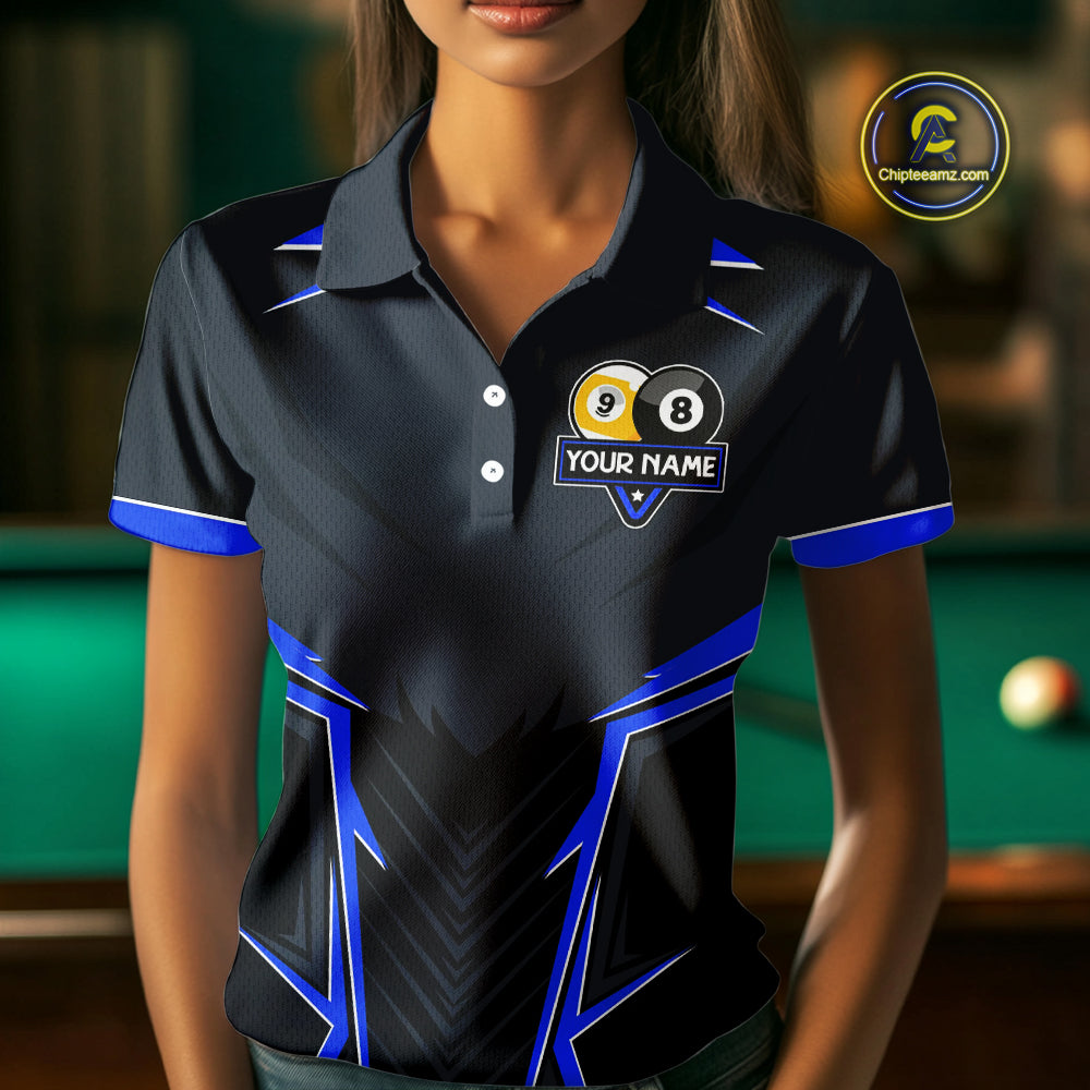 Billiard Jersey For Women Custom Polo & 1/4 Zip Billiard Team Shirt, 8 Ball & 9 Ball Pool Shirt|Blue TDM4329