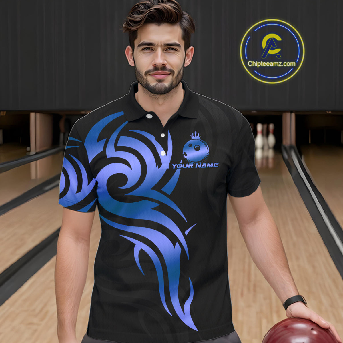 Black and Blue crown Bowling ball Polo, Quarter Zip Shirts for Men Custom Bowling Team jerseys NQS10730
