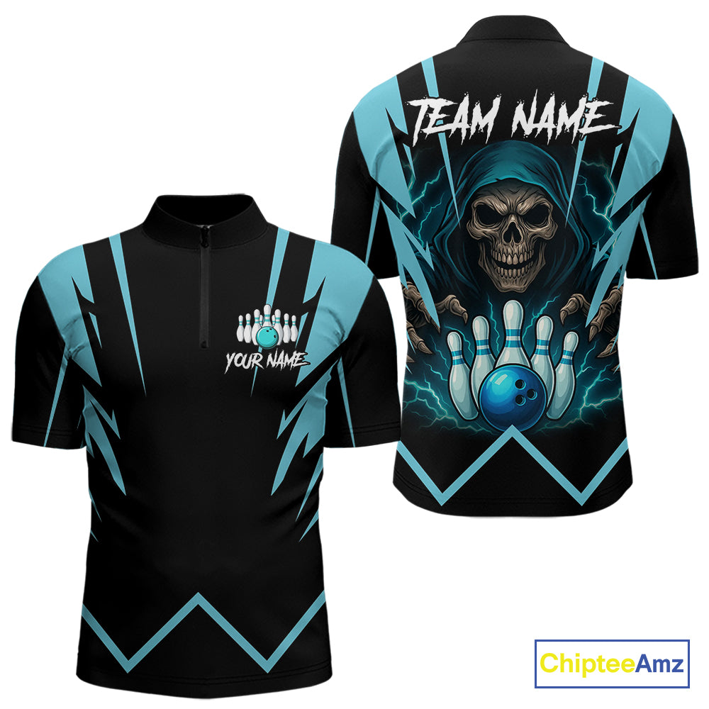 Black and Blue Reaper Skull lightning Bowling Shirts for Men Custom Skull Team Bowling league jersey NQS10869