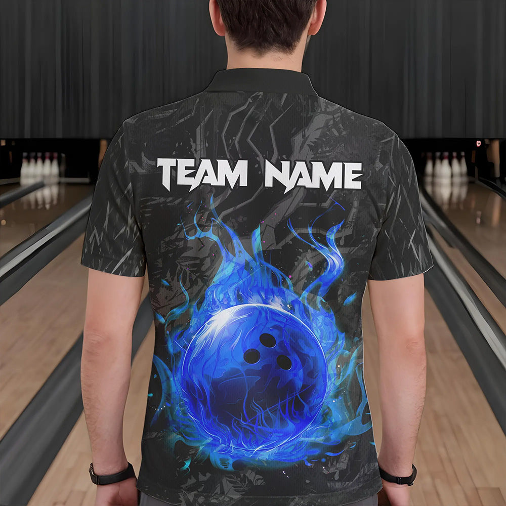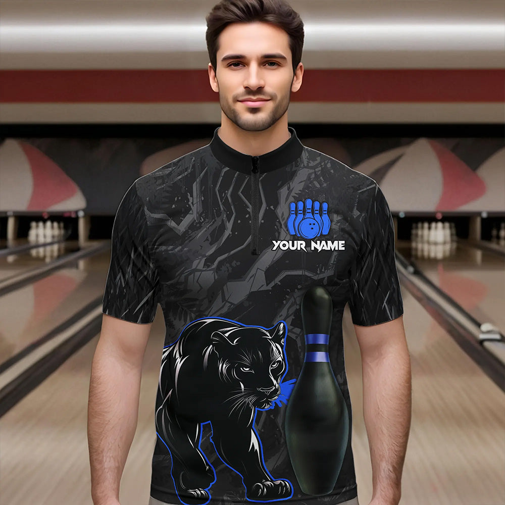 Black Camo Panther Blue Flame Bowling Polo, 1/4 Zip Shirts For Men Custom Bowling Team League Jersey NQS9443
