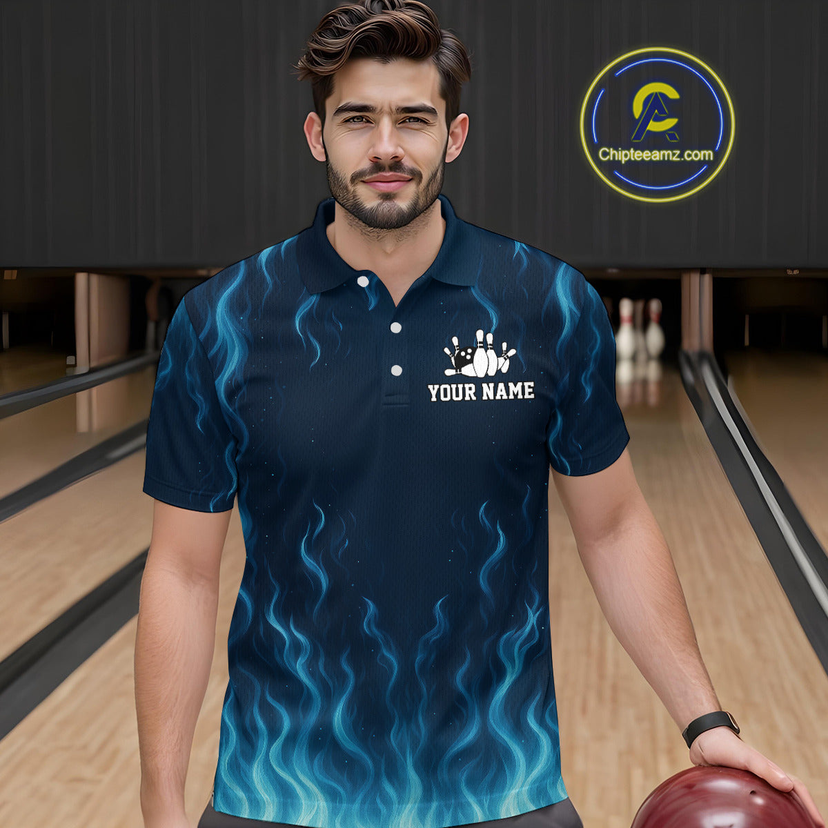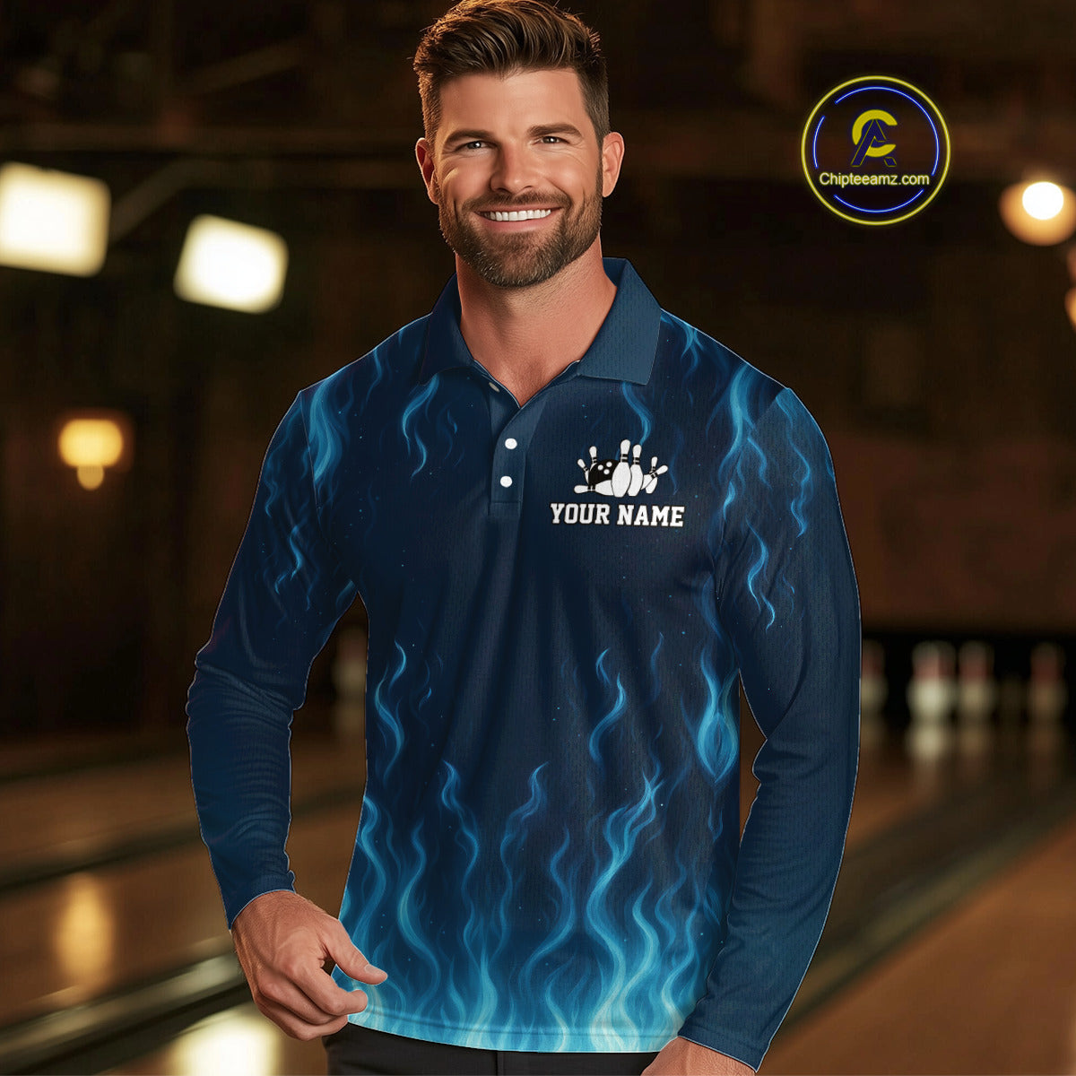 Blue flame lightning thunder Bowling polo, quarter zip shirts for men custom Bowling team jerseys NQS10387