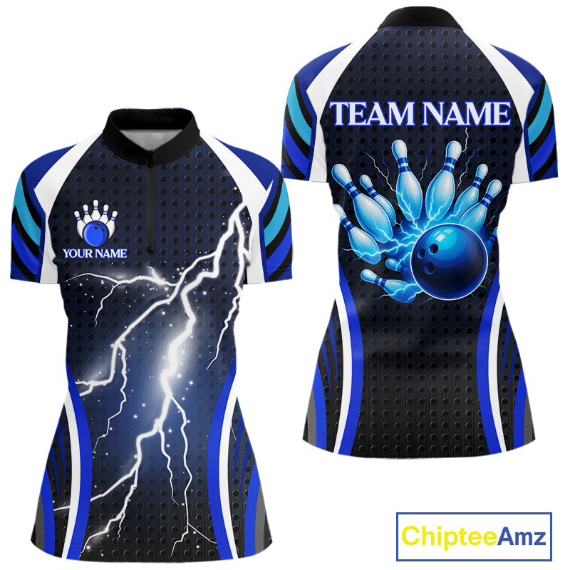 Blue Lightning Thunder Bowling Shirts For Women Custom Bowling Jerseys Ladies, Best Bowling Shirts NQS10879