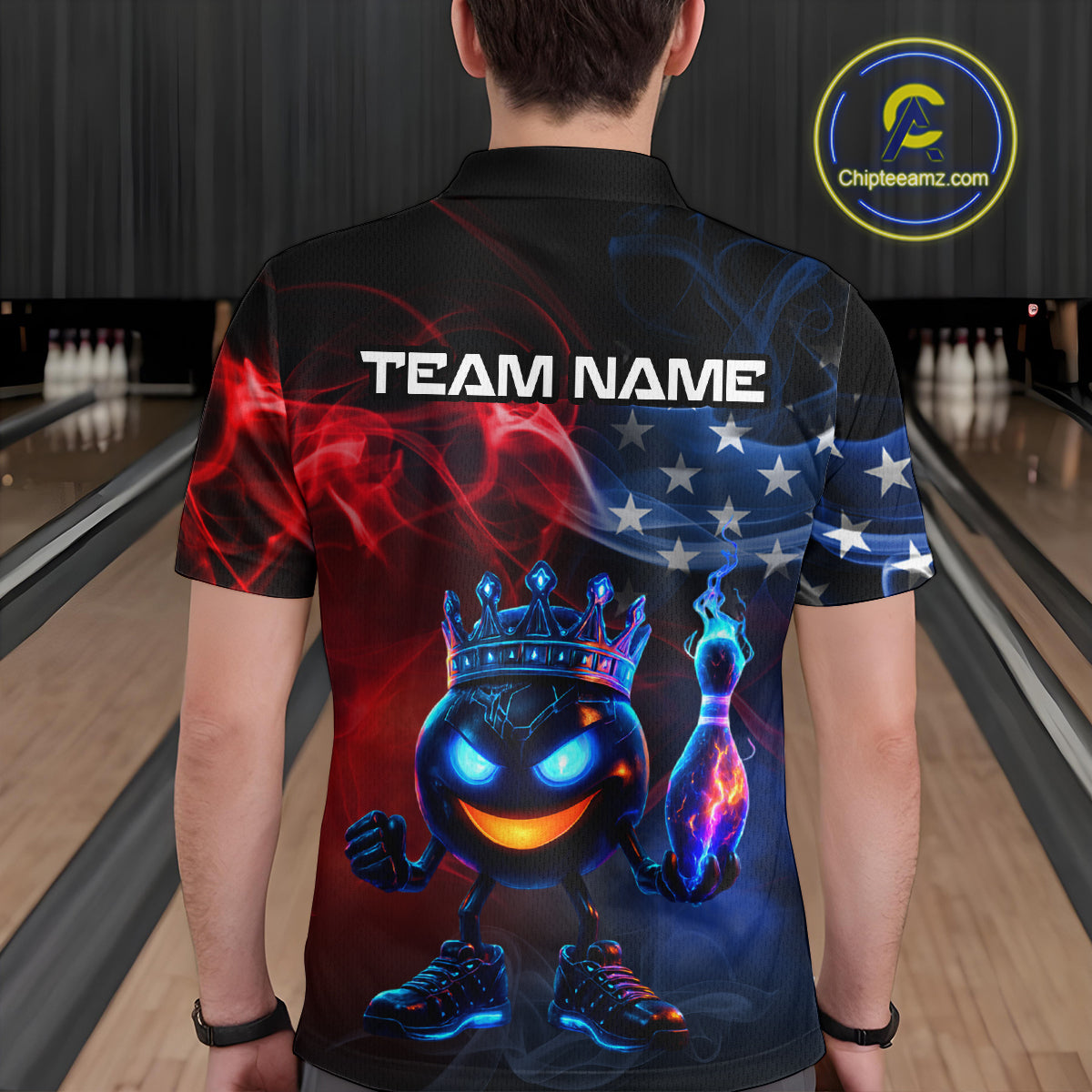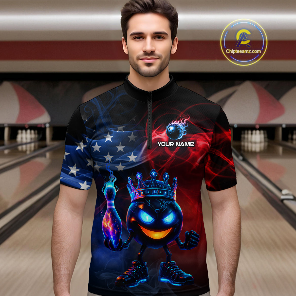 Custom American Flag Bowling Shirt Hero Bowling Ball Pin Polo & 1/4 Zip Bowling Jersey for Men QZT800