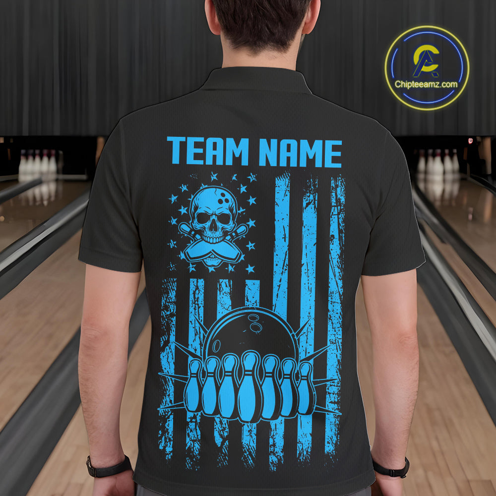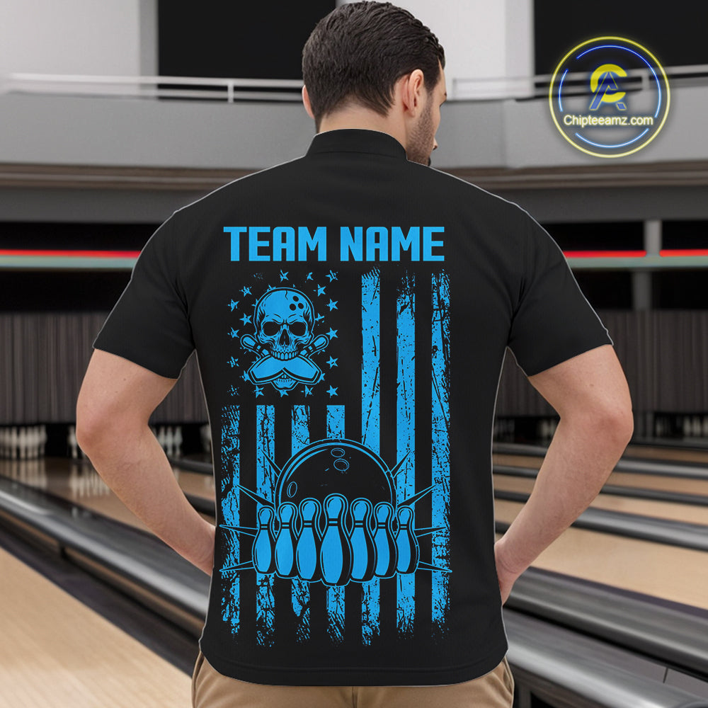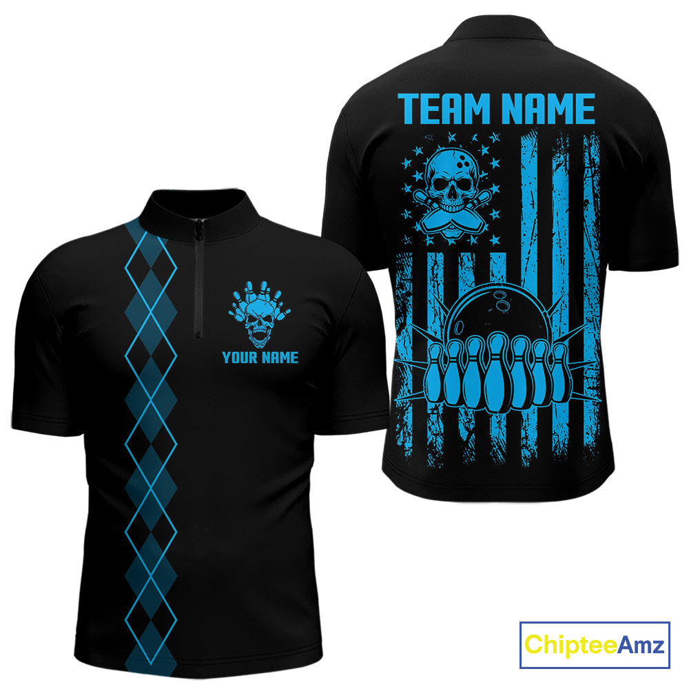 Custom Black and Blue argyle American Flag Skull retro Mens Bowling Shirts patriotic Team Jerseys NQS11132
