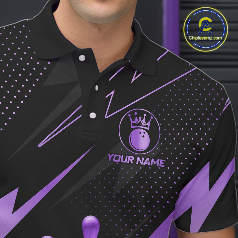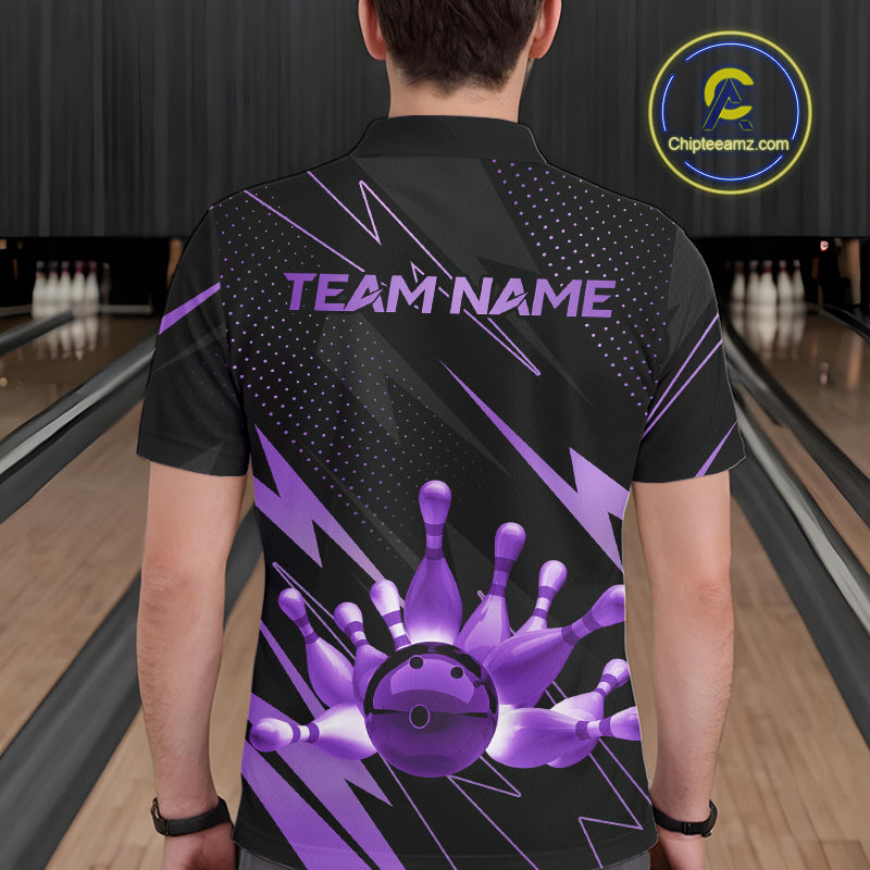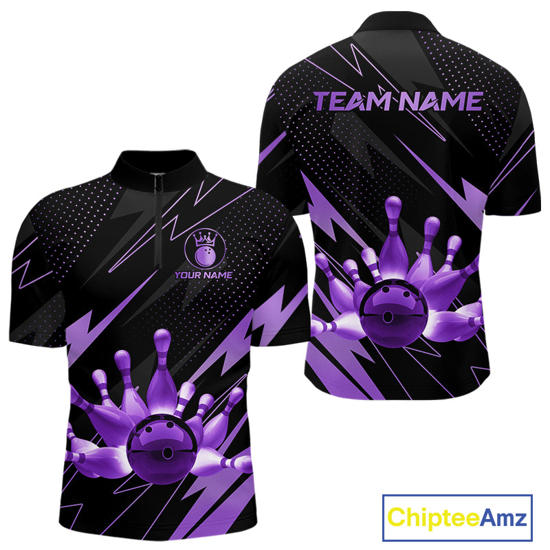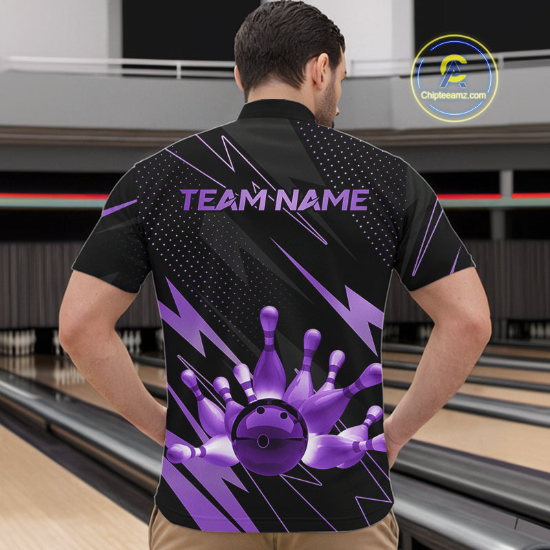 Custom Black and Purple Bowling Polo, Quarter Zip Shirts for Men, Team Bowling League Jersey NQS10894