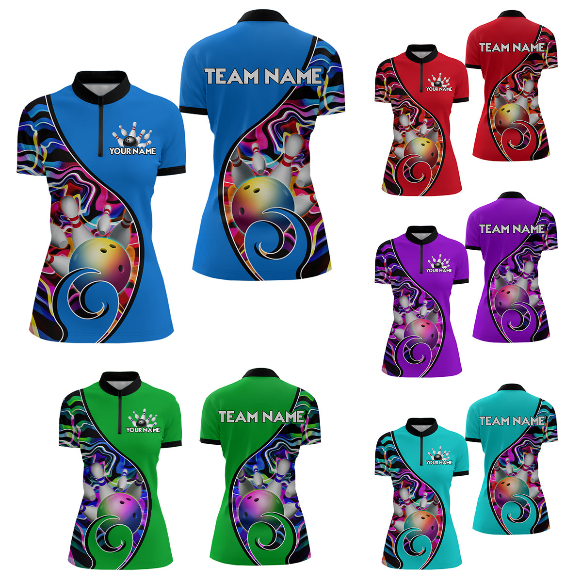 Custom Bowling Team Women Quarter-Zip Shirts - Personalized Abstractt Colors Bowling Jersey YYD0080