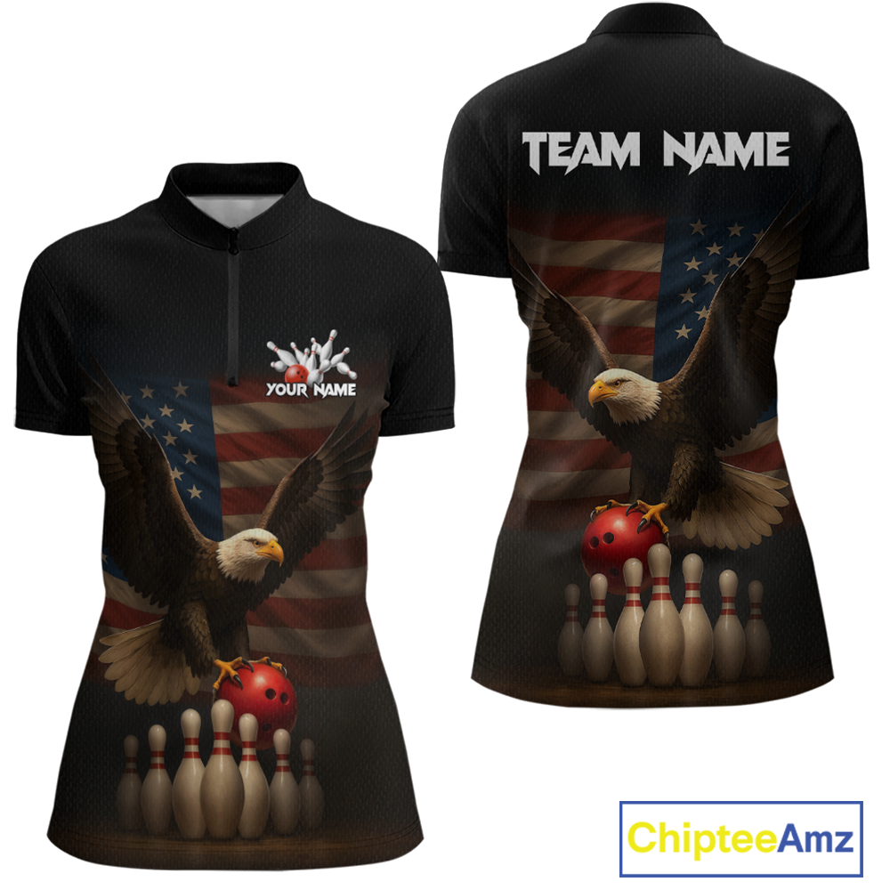 Custom Custom American Eagle Bowling Shirt for Women Polo & Quarter-Zip Bowling Jersey Bowling Outfit QZT779