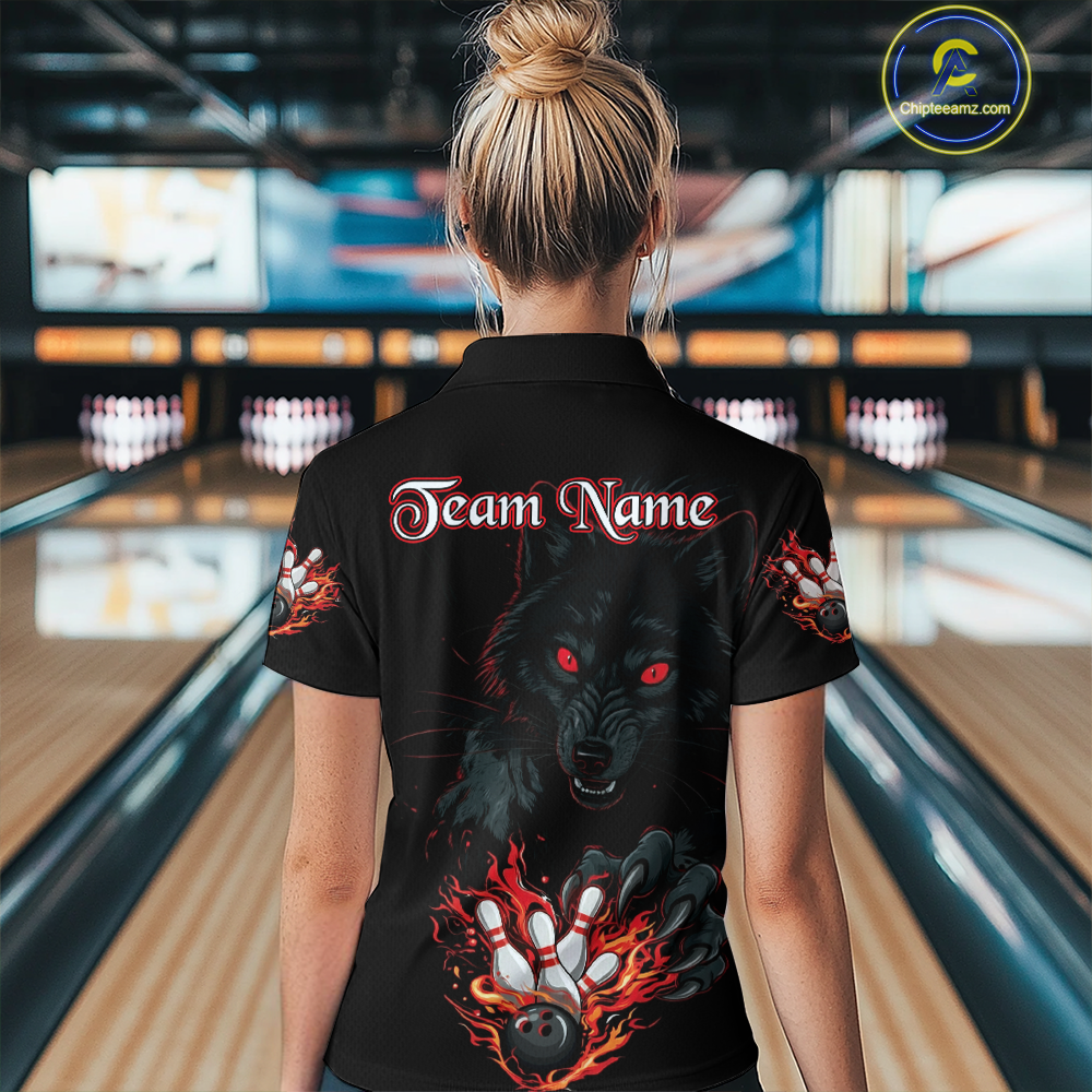Custom Flame Wolf  Bowling Jersey for Women Bowling Uniform Polo & 1/4 Zip Bowling Team Shirts HNT144