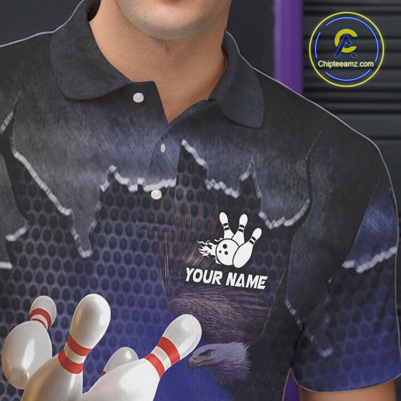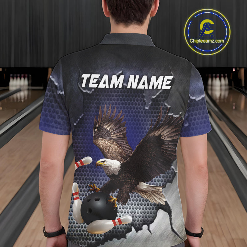 Eagle Bowling Polo, Quarter Zip Shirts for Men Custom Team Bowling jerseys, gift for bowlers | Blue NQS10972