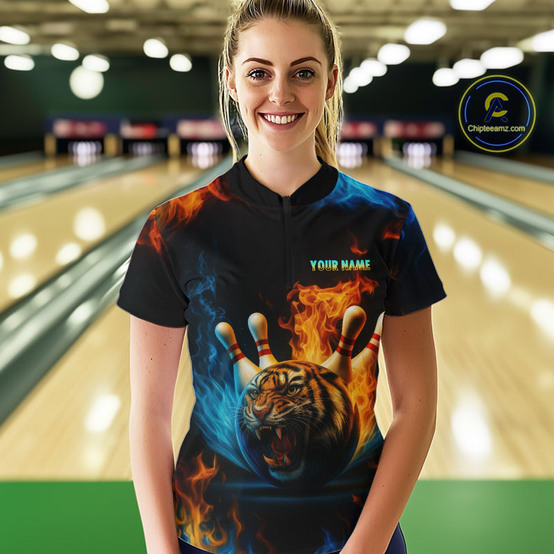 Flame Tiger Bowling Shirts for Team Men Women Custom Bowling Jersey Polo & 1/4 Zip MBL190