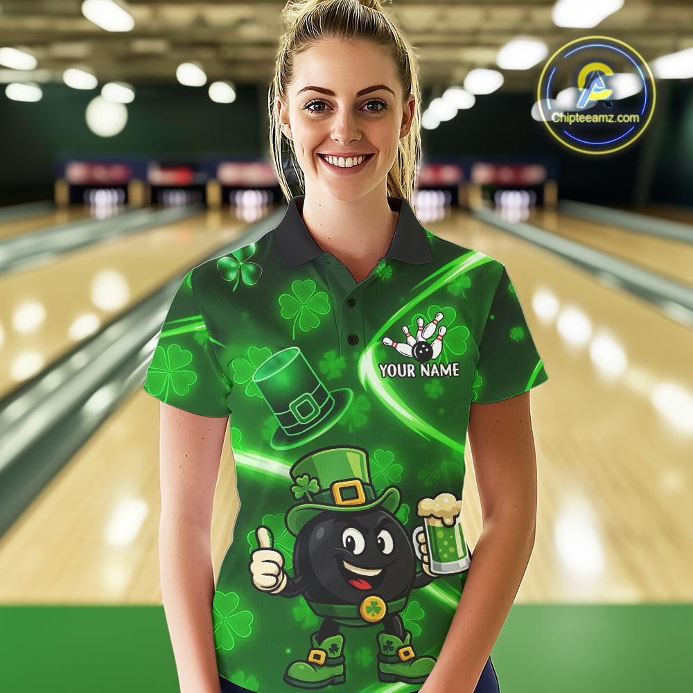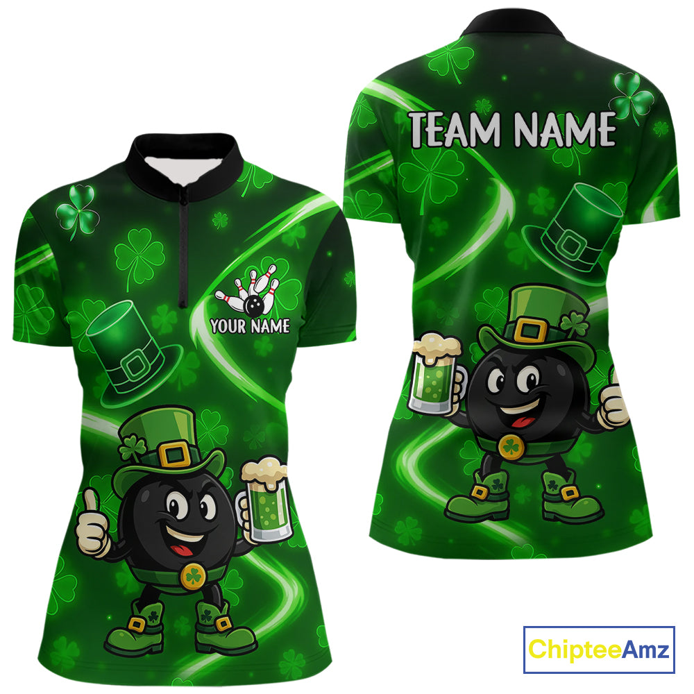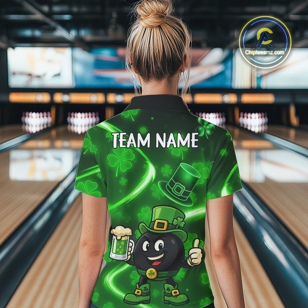 Green shamrock pattern Funny Bowling Shirts For Women Custom St Patrick Day Lucky Team Bowling Jersey NQS11133