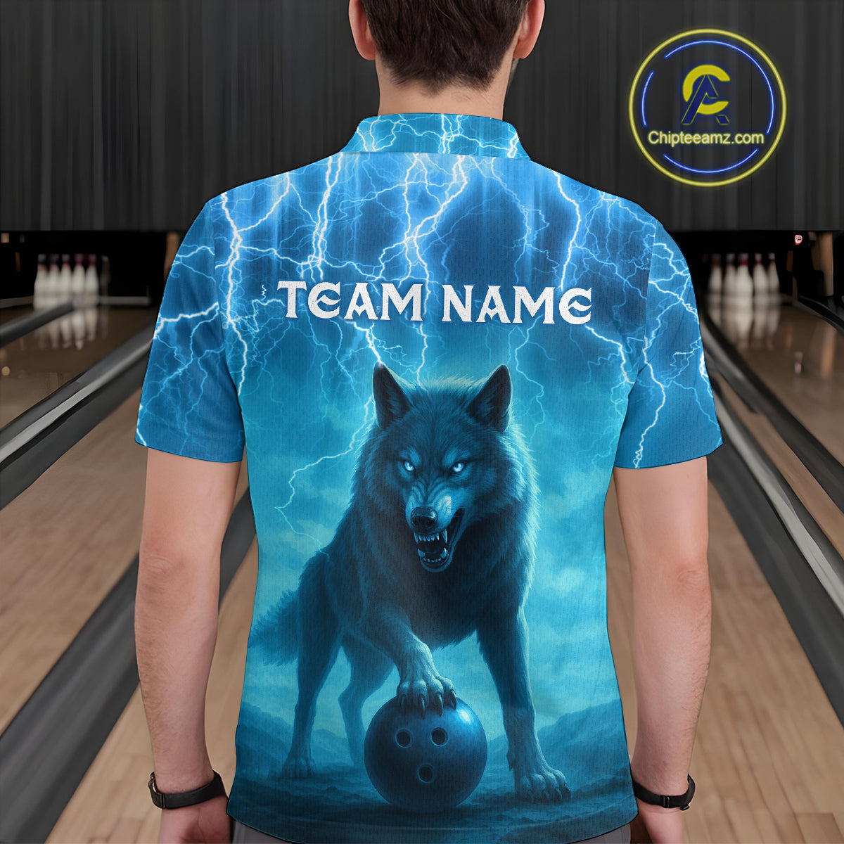 Lightning Wolf Bowling Shirts for Team Women Men Custom Blue Wolf Bowling Jerseys MBL193