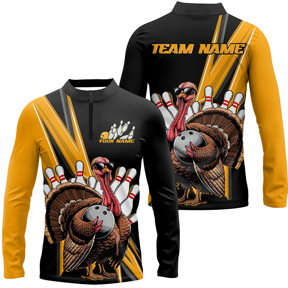 Black And Yellow Custom Awesome Turkey Bowling Shirts For Men, Thanksgiving Bowling Team Jerseys IPHW7880