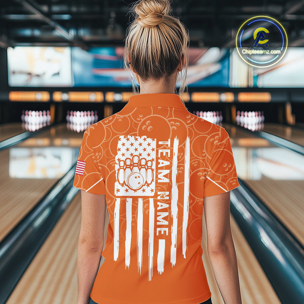 Orange bowling camo Womens bowling shirts Custom American flag patriotic bowling team league jerseys NQS10715