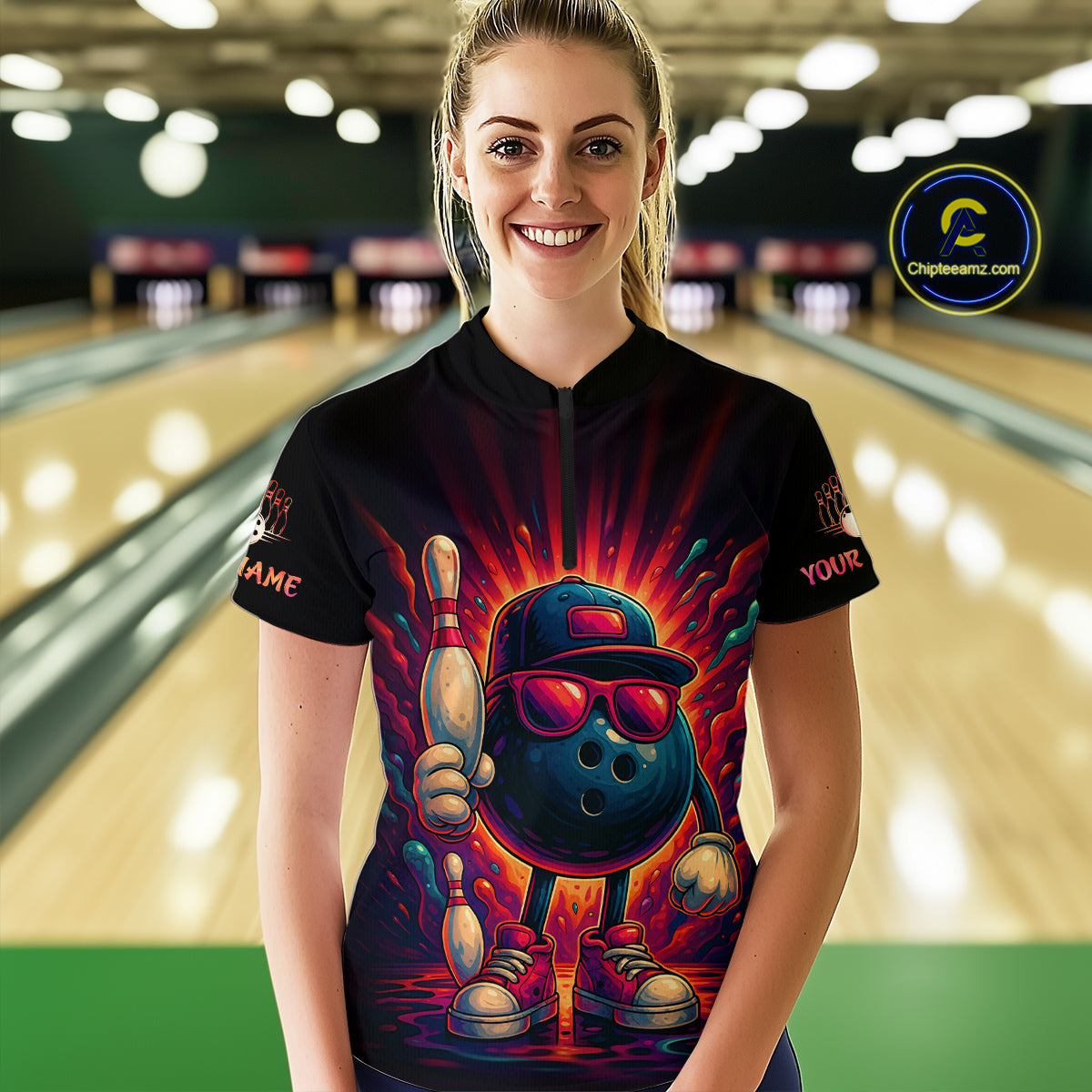 Personalized Funny Bowling Polo, Quarter Zip Shirts For Women Custom Team Bowling League Jerseys NQS11111