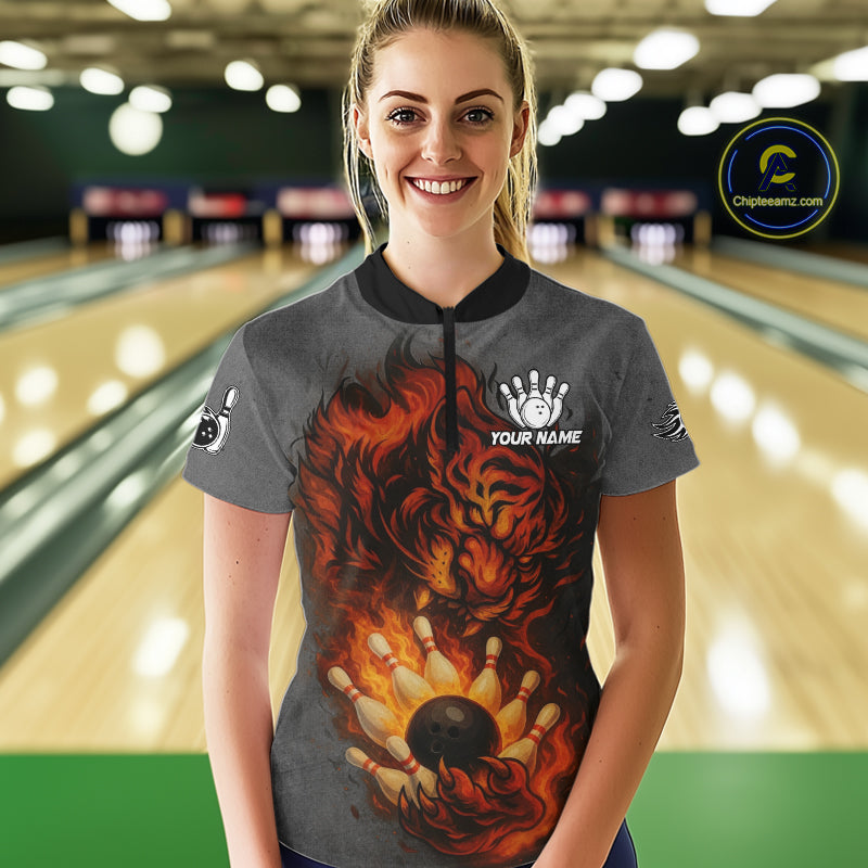 Personalized Tiger Bowling Shirts For Women Custom Gray grunge Flame Tiger Bowling Team Jerseys NQS11137