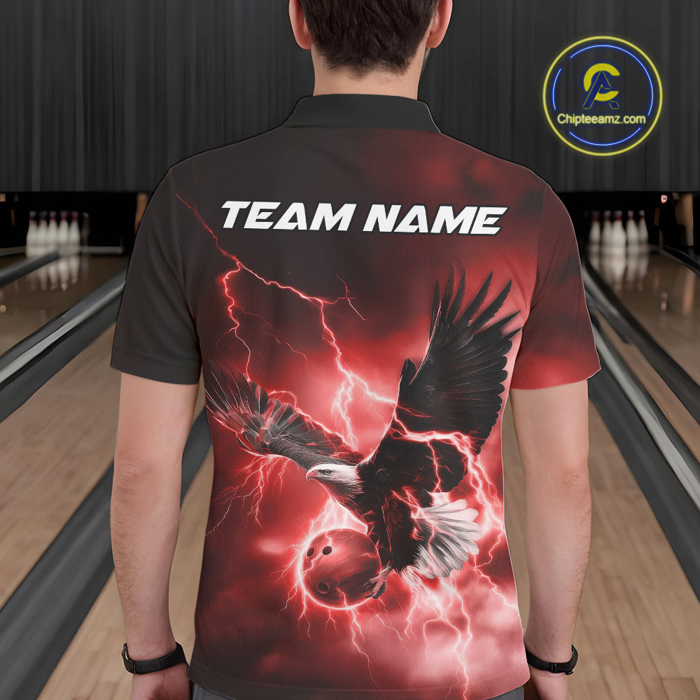 Custom Red Thunder Lightning Eagle Bowling Men Polo Shirts, Eagle Bowling Team Jerseys IPHW10147