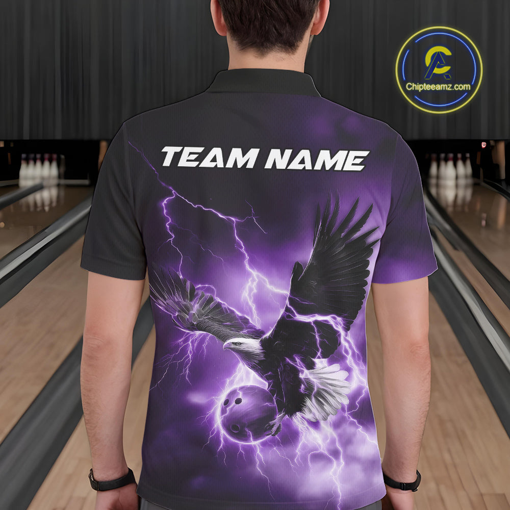 Custom Purple Thunder Lightning Eagle Bowling Men Polo Shirts, Eagle Bowling Team Jerseys IPHW10148