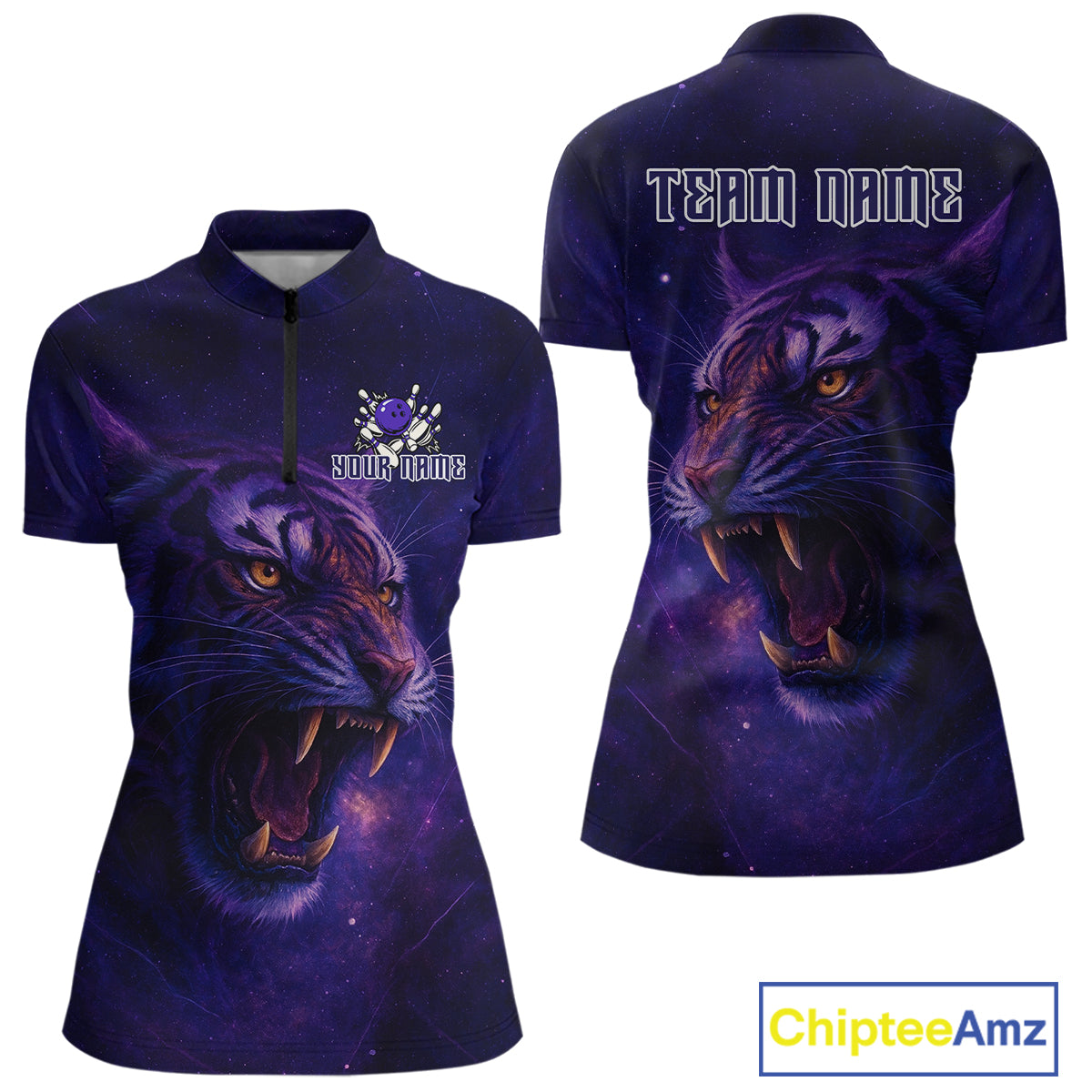 Purple Tiger Bowling Shirts for Team Men Women Custom Bowling Jersey Polo & 1/4 Zip Shirt MBL189