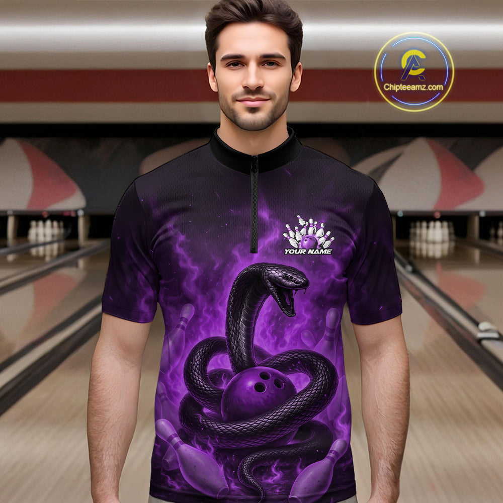 Custom Purple Flame Black Mamba Snake Bowling Men Quarter-Zip Shirt, Snake Bowling Team Jerseys IPHW10150