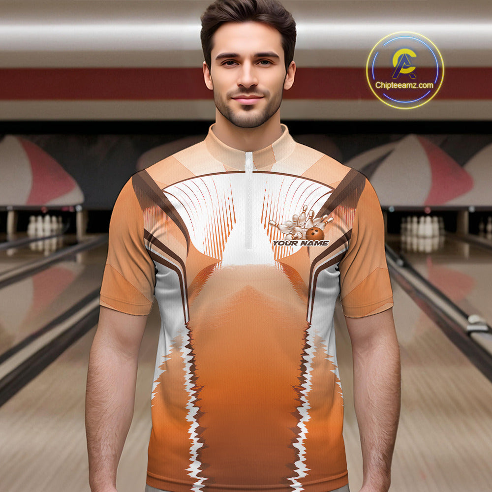 Custom Orange Bowling Team Jerseys, Bowling Uniform Bowling League Quarter-Zip Shirts For Men IPHW9937