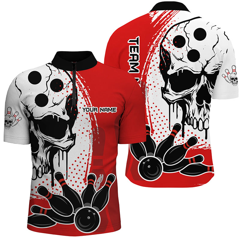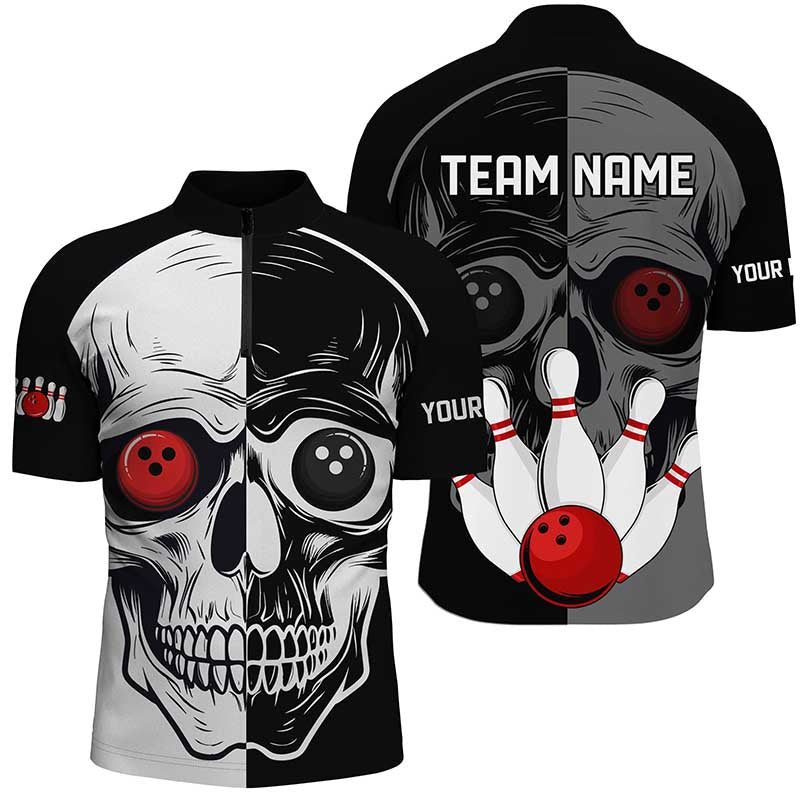 Skull Bowling Shirt for Men Custom Bowling Jersey Bowling 1/4 Zip Shirt Bowling Team League QZT293