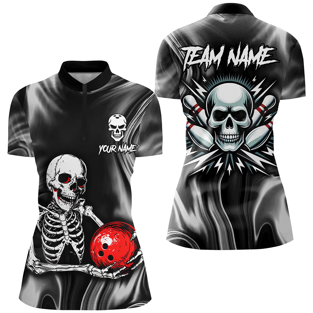 Skull Bowling Shirt for Women Custom Bowling Jersey Bowling 1/4 Zip Shirt Bowling Team League QZT293