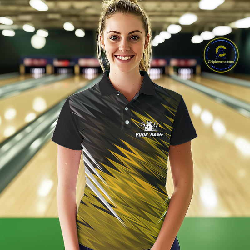 Yellow and Black Bowling Shirts For Women Custom Name and Team name Bowling Jerseys Bowlers Outfit NQS11003