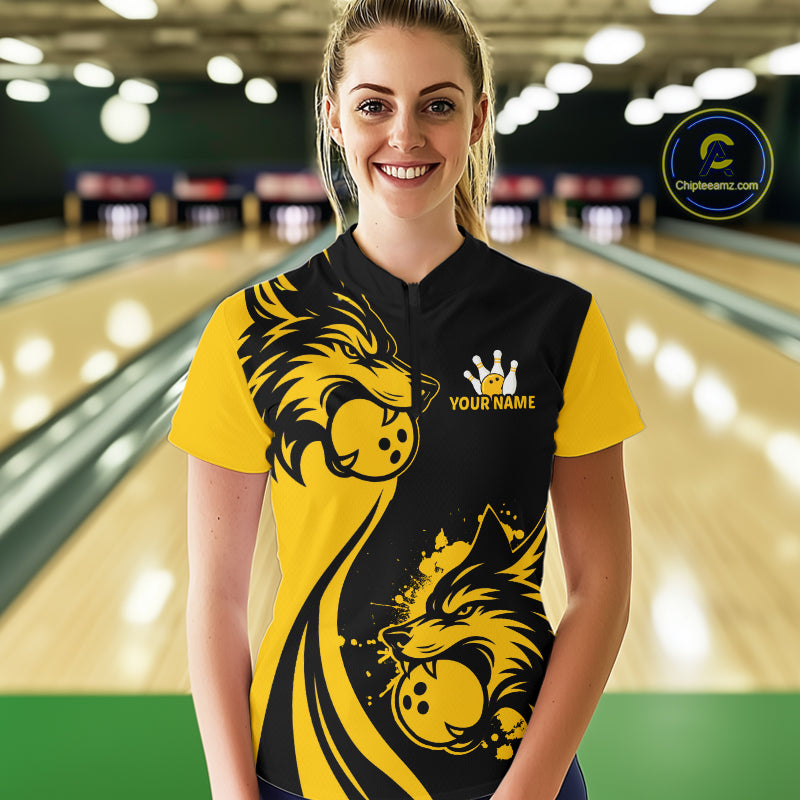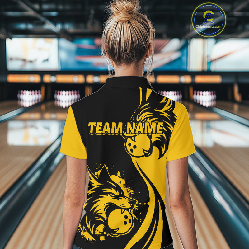 Yellow Wolf Bowling Shirts for Team Men Women Custom Wolf Bowling Jerseys for Couples MBL197