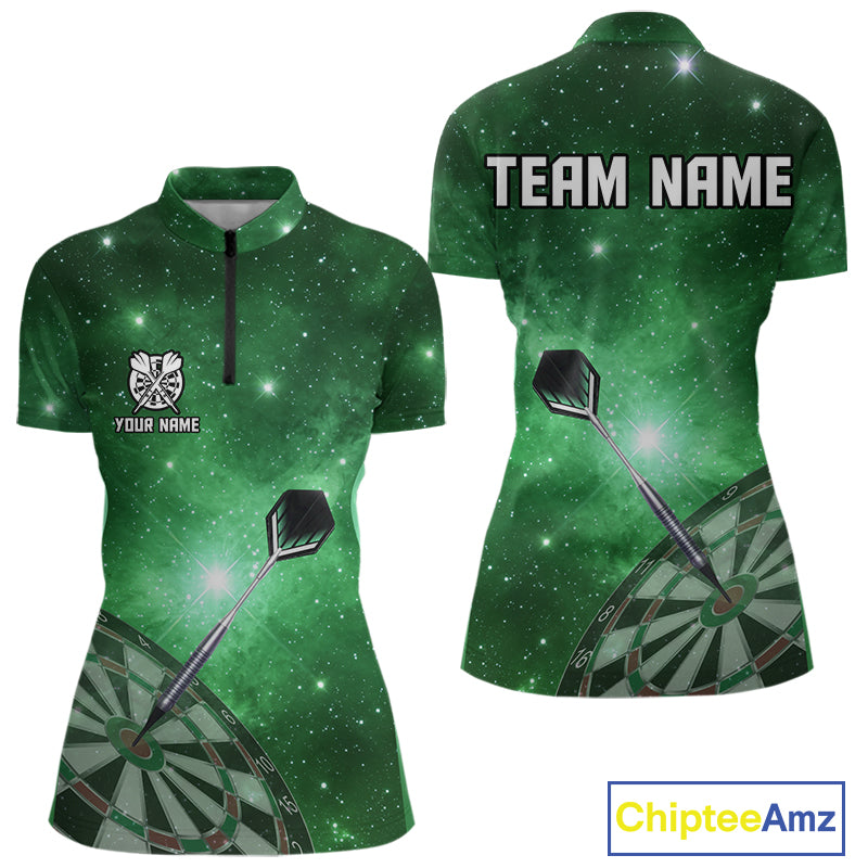 Green galaxy space pattern Darts Polo, Quarter zip Shirts For Women Custom Team Darts Jersey Outfit NQS10877