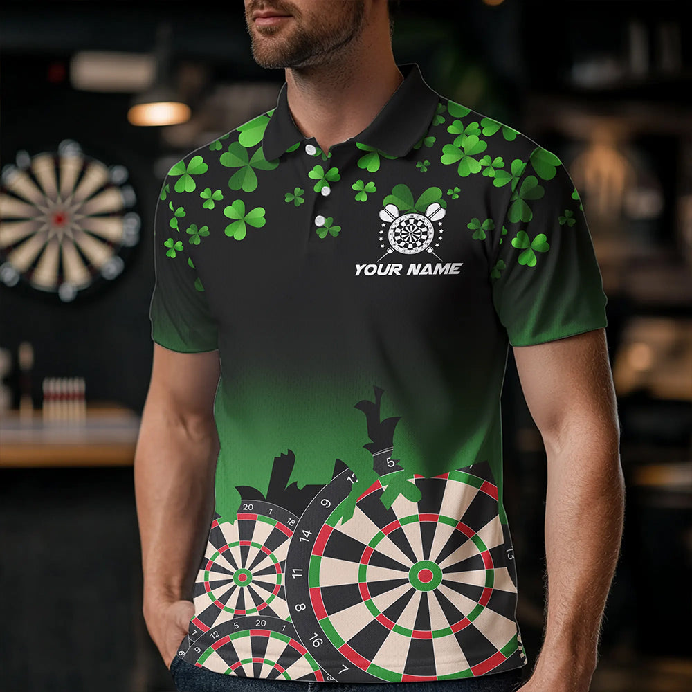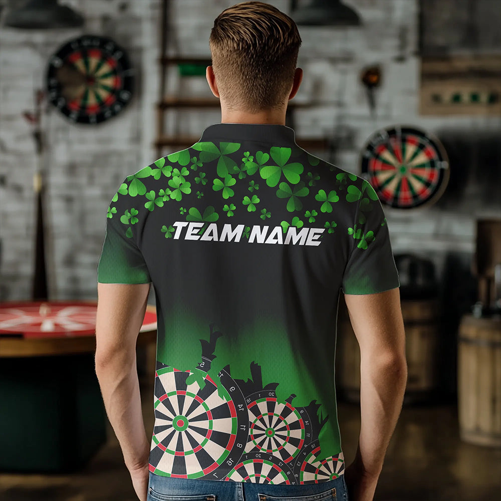 Green Shamrock Darts Board pattern Lucky Darts Shirt For Men Custom St Patrick Day Team Darts Jersey NQS9389