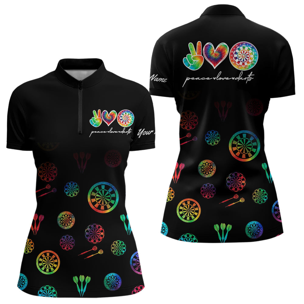 Personalized Colorful tie dye Black Camo Darts Shirts For Women Custom Peace Love Darts Team Jerseys NQS9484